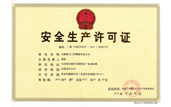 The Group has civil explosive production companies, business companies, blasting operation companies and can provide ‘integrated service’ from product production to blasting operation. The Company has both explosive production qualification issued by Ministry of Industry and Information Technology of the People's Republic of China and blasting operation qualification issued by Ministry of Public Security, is in the industry-leading position and also the unique listed company on Hong Kong GEM which is engaged in civil explosive industry.
